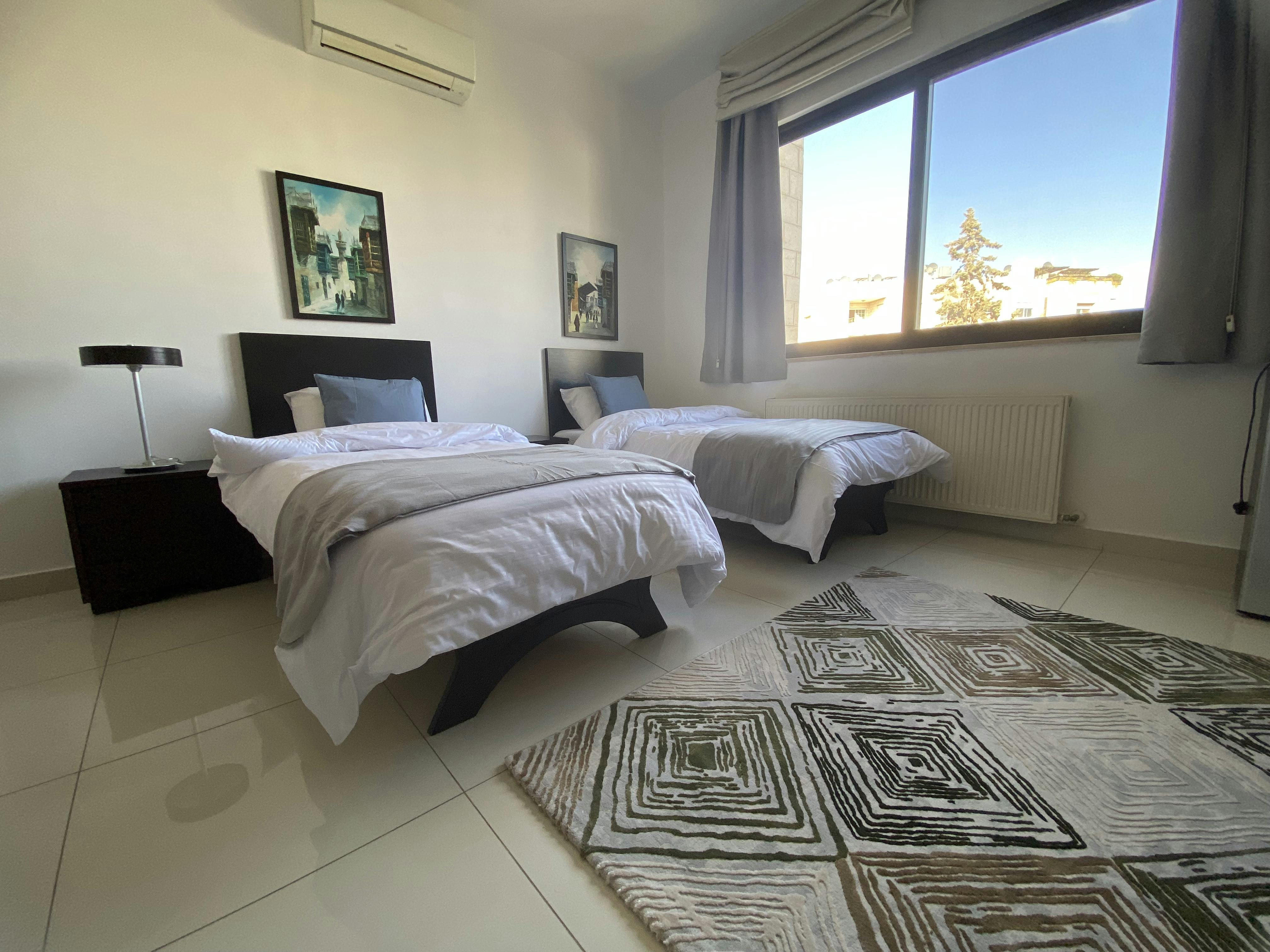 Indulge in the epitome of luxury with our Penthouse Apartment at Lemon Tree Residence, offering direct access to the rooftop for an elevated experience. This expansive apartment presents a harmonious blend of space and sophistication, featuring a capacious living room, three distinct bedrooms, and three and a half bathrooms. Immerse yourself in the lavish ambiance of walk-in showers and complimentary toiletries. The fully-equipped kitchen beckons with a stovetop, refrigerator, kitchenware, and a microwave. Revel in modern entertainment with a flat-screen TV, and relish the convenience of a washing machine, dryer, and soundproof walls. Enjoy the panoramic city views from this remarkable unit, where luxury meets comfort. With two king beds and two single beds, our Penthouse Apartment can fit up to 6 people, and promises an unparalleled stay in the vibrant heart of Amman.